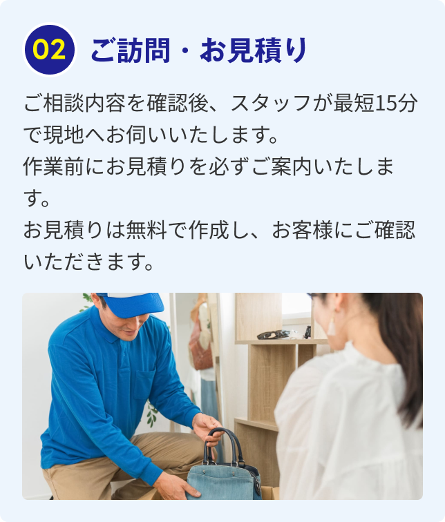 お見積もり内容をご確認いただいたうえで、作業前であればキャンセルしていただいて問題ありません。お見積もり後に無理な営業や強引な作業の開始は一切行いませんので、金額や内容にご納得いただけない場合はその場でお断りいただいて大丈夫です。安心してご相談ください。
